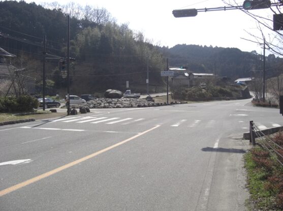 そこからさらに100m程で国道165号に突き当たる。初瀬街道 が左右に通る、その辻を右に折れる
