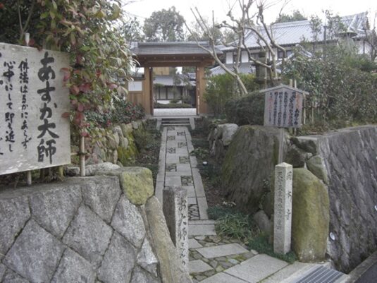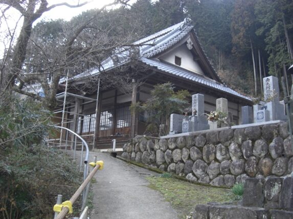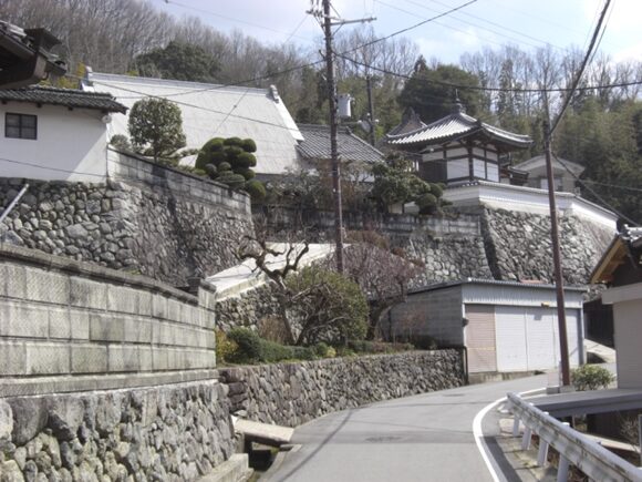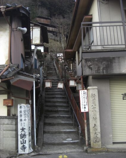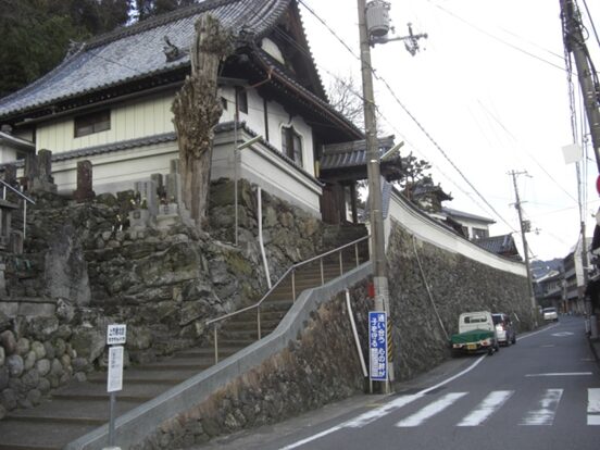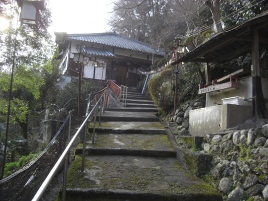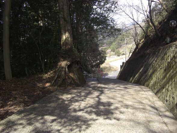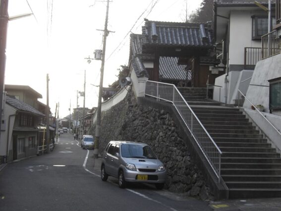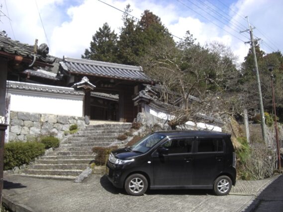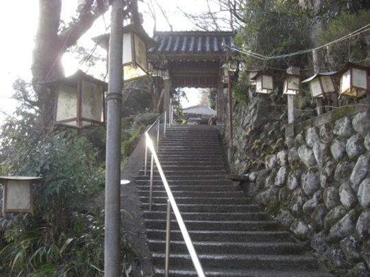 澤井寺の少し先、左に行けば吉野川に架かる上市橋の北詰交差点国道169号に交叉して、橋を渡り進むと吉野山へ行く道右手に細い階段の上り道があるので寄っていきます