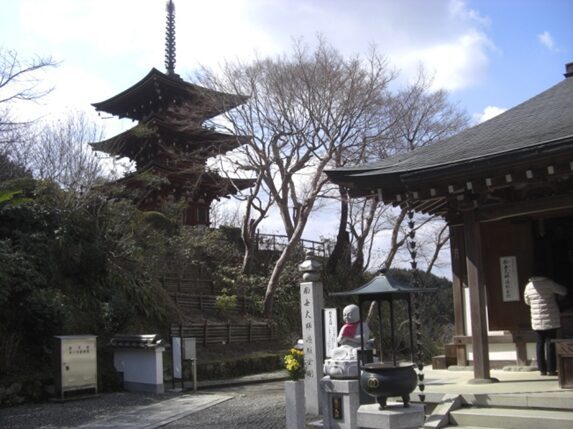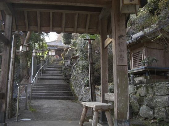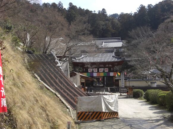 お寺の下は断崖で下には国道、その向こうに吉野川が流れ、遠望に吉野山と景色がいい。何故写真に収まっていないか不思議残念。急な階段を上るのに必死だったのか