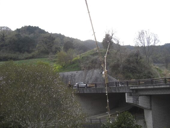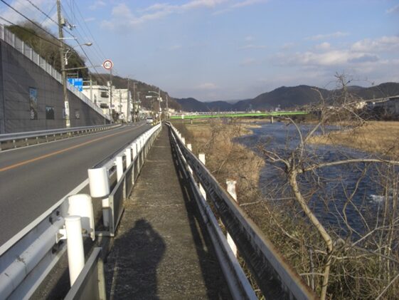 国道に出て吉野川の上流の吉野大橋を遠望を振り返る
