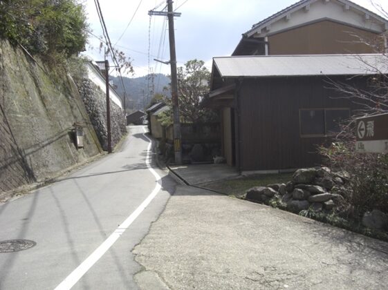 石舞台公園を右に見てすすむと突き当たりに出るので左の道は 多武峰(談山神社)への新しい道。岡街道は右に折れる