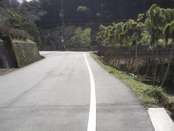 右に折れた新道、素晴らしく綺麗に整備された道である