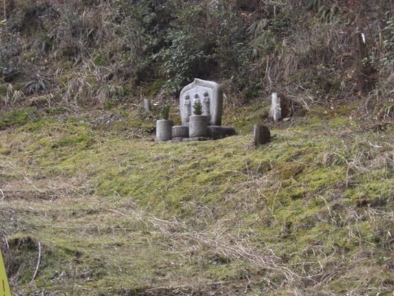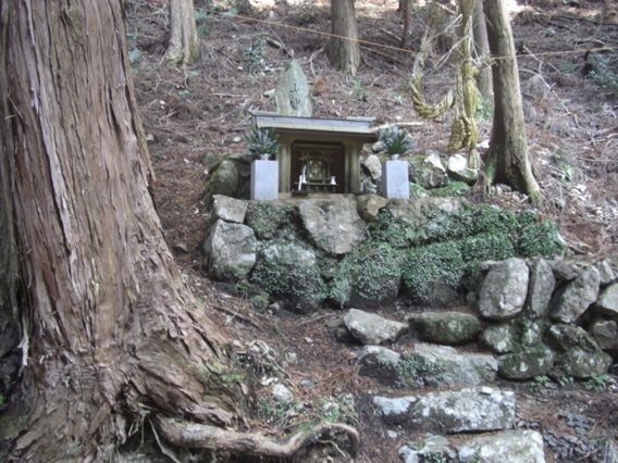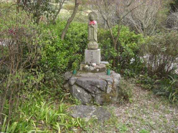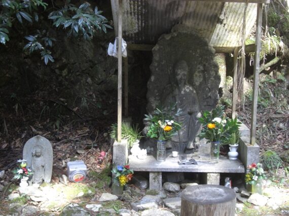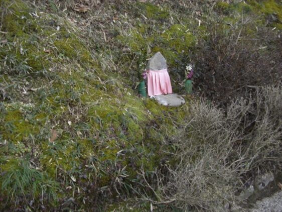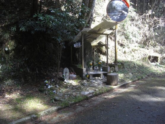 左に入り少し左にカーブした左道沿いに、小さな お地蔵さん が祀られているここで間違いなく古道と確信しました