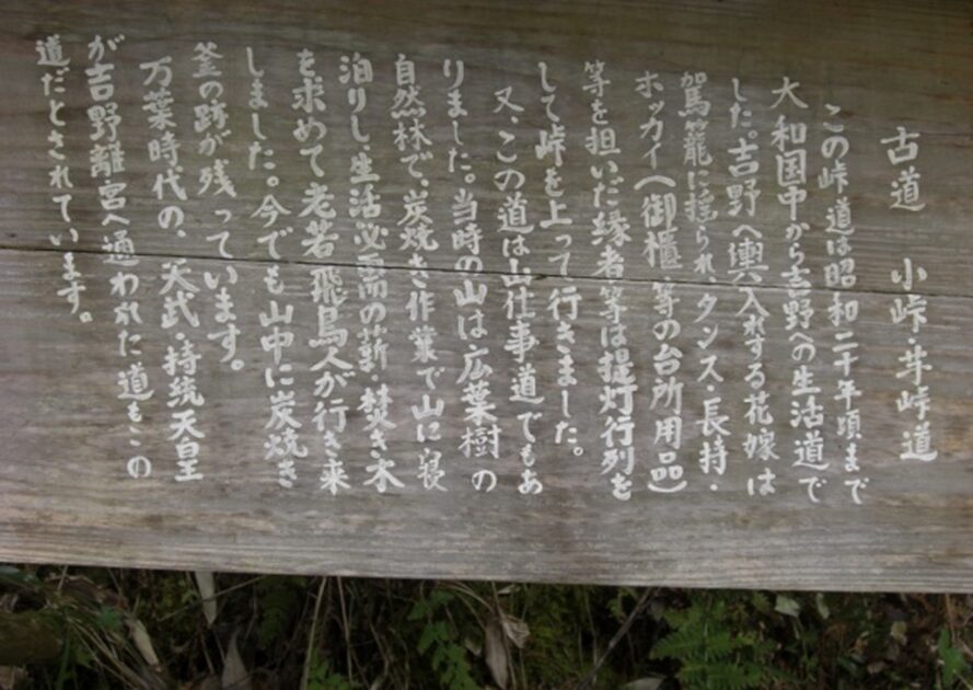峠からの吉野へ抜ける古道も今は廃道となっていると書かれています