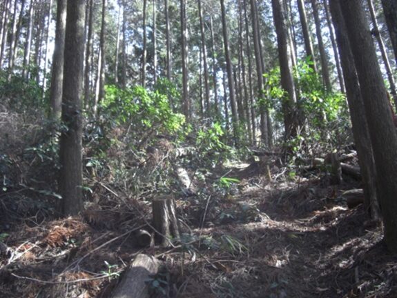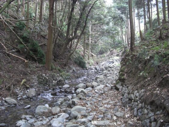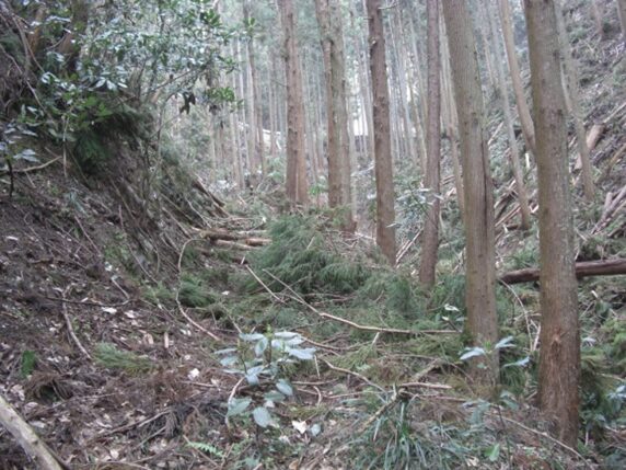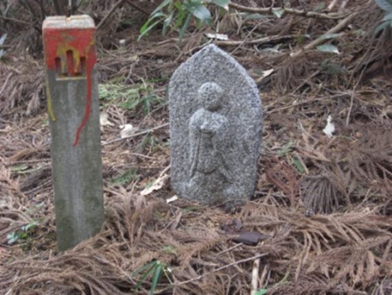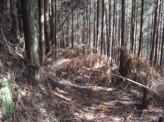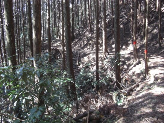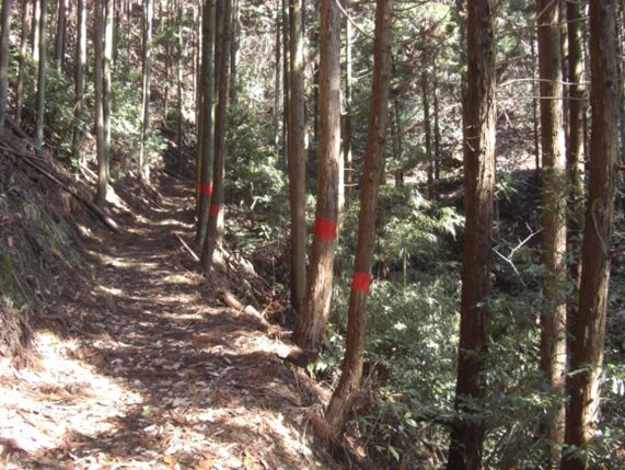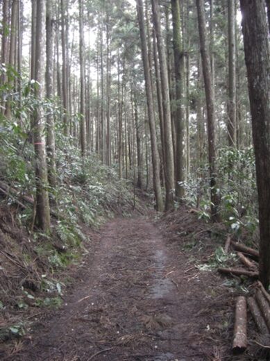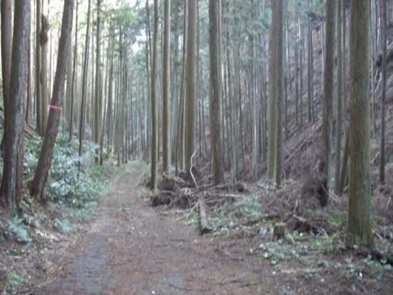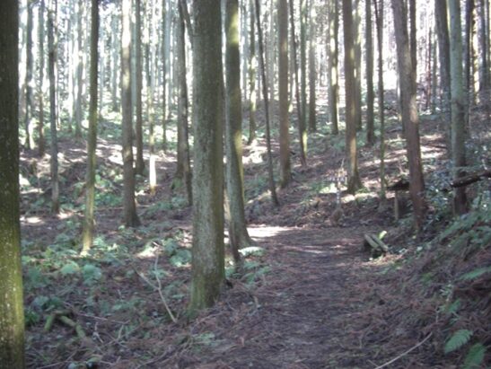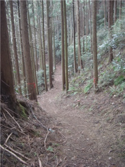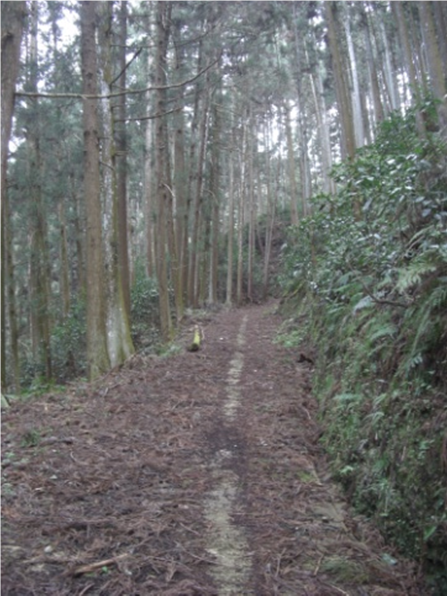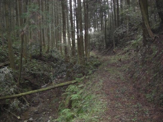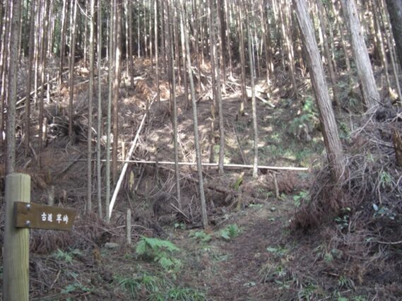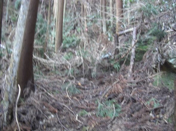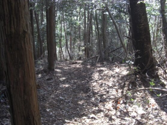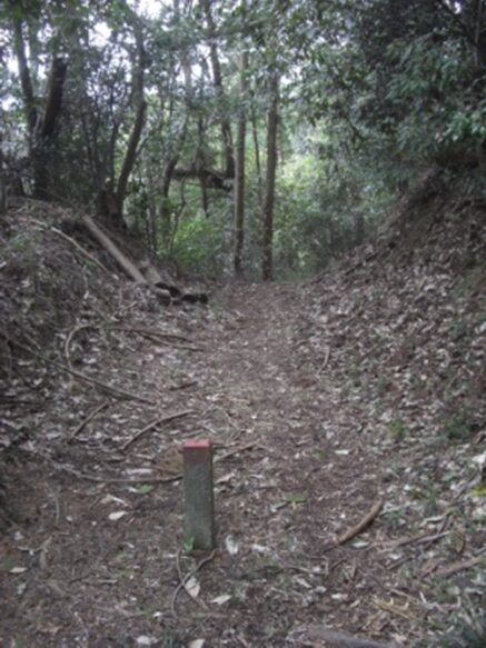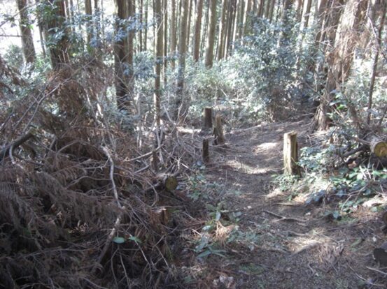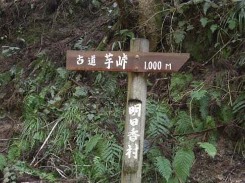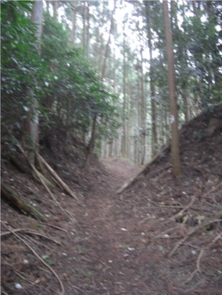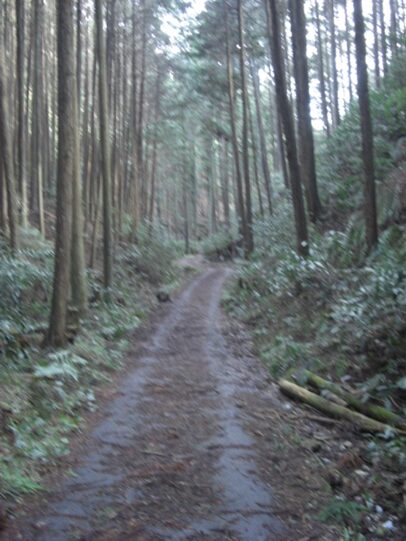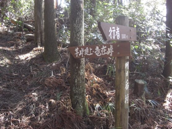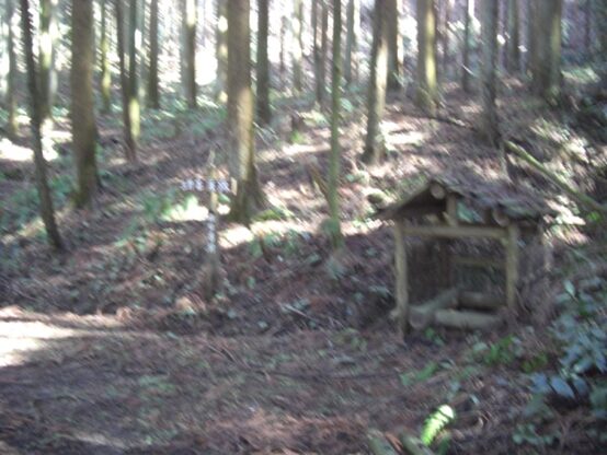 それから古道を進むも、芋峠で新道に下りるところが分からず、竜在峠方面の峯を進んでしまった、20分程歩き、回りの様子が違うことに気が付き芋峠へ引き返すも30分以上のロスをつくる。後で地図を見て冷や汗をかいた、とんでもない方向であのまま歩いていたら大変だっただろう。