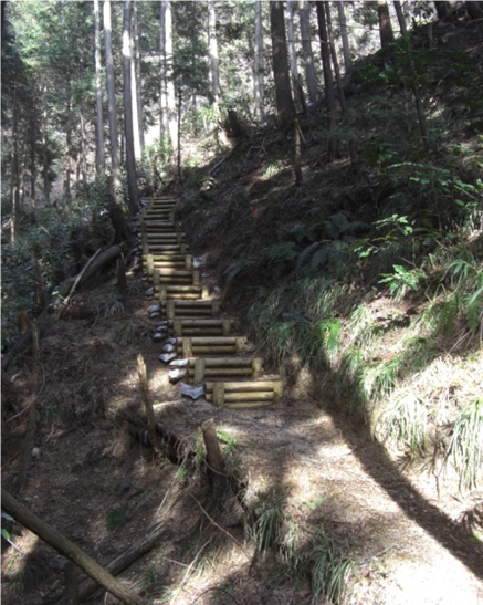かなり急勾配の階段、でも整備していただいた方々へ感謝します