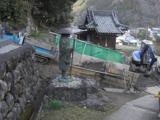 左に100mほど進むと寺川に架かる橋の手前右手にに 地蔵堂