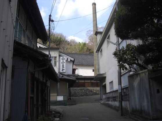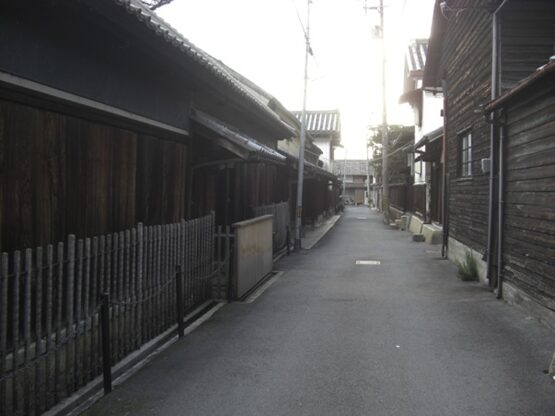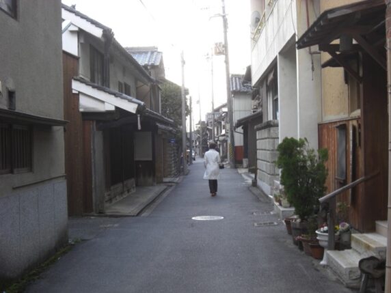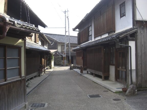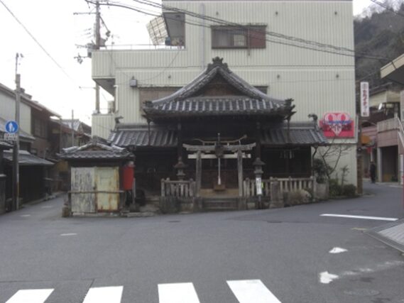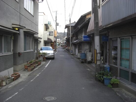 分岐の正面角に 蛭子宮 宮のところで、右の道と左の道に分かれていますが、どちらも古い風景の街並みで、その先で再び合流します