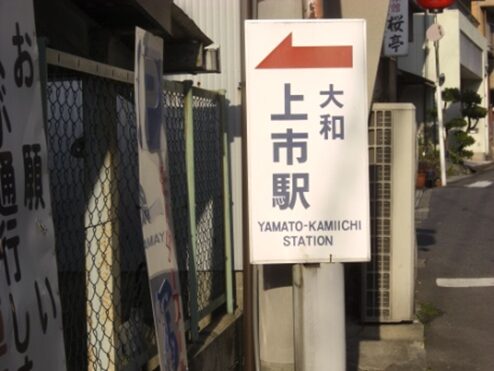 その直ぐ先で、近鉄吉野線の陸橋を潜ります右の坂を上ると近鉄吉野線上市駅