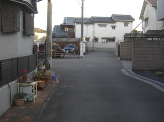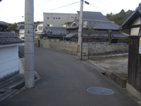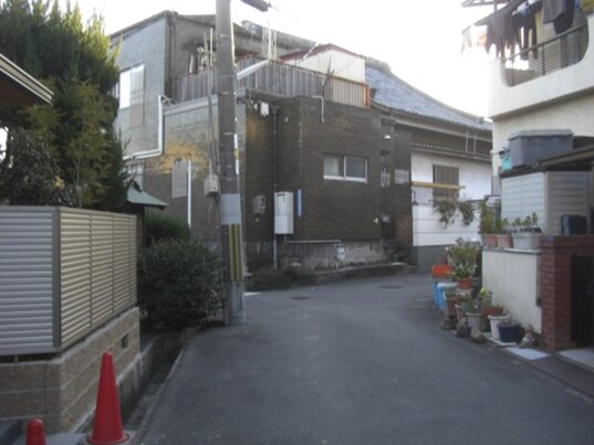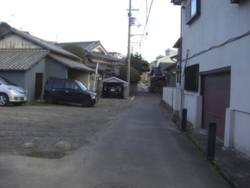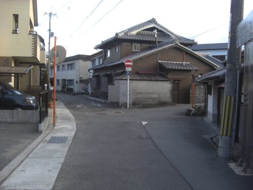 左に折れて数十m先の四辻の次の角を右に折れる