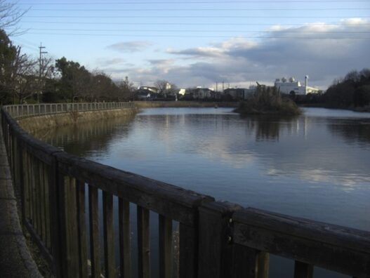北中学を越えたところで、右に耳原公園と大きな池に出る