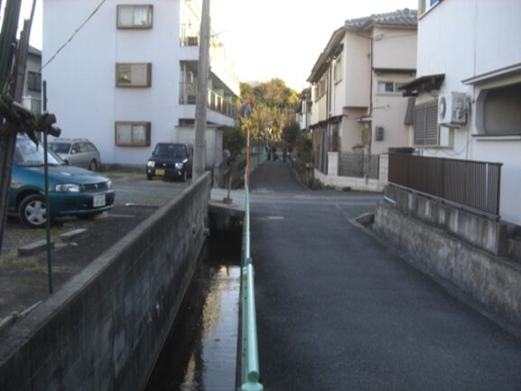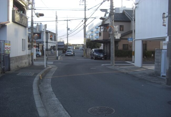 左に折れた先の道