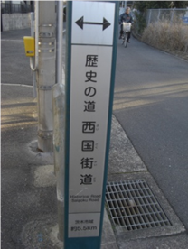 西国街道 と交差する交差点に出る