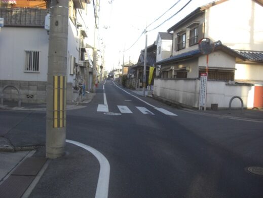右に折れた先の街道 東福井2丁目11