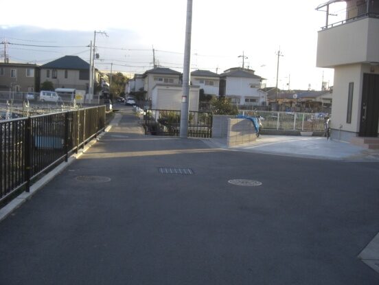 辻から見た左の道筋だが新しい住宅で整備された道のようだ