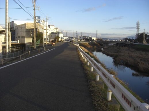 福井街道は右の茨木川の堤防を進む