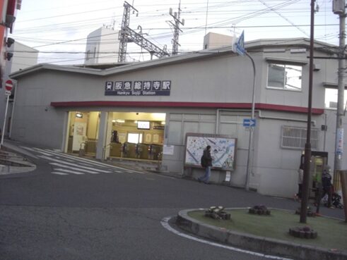 この先で左に折れて東に進みます、総持寺駅へ