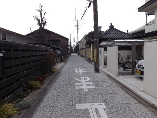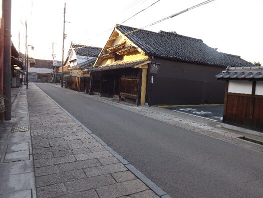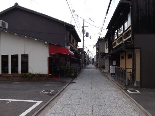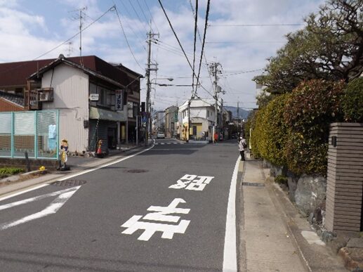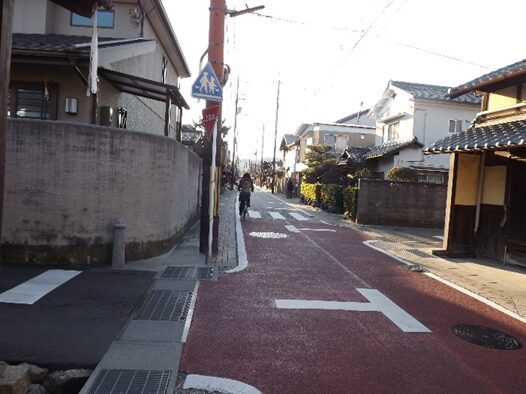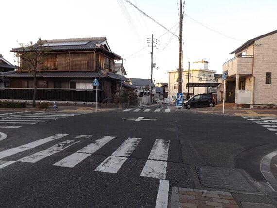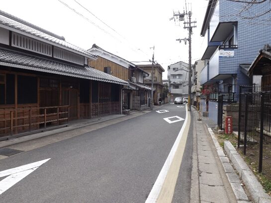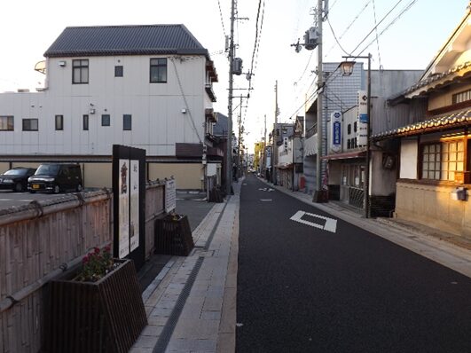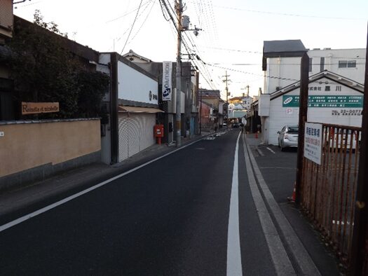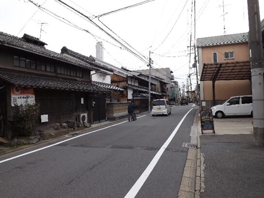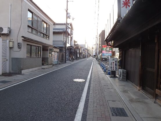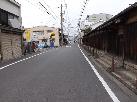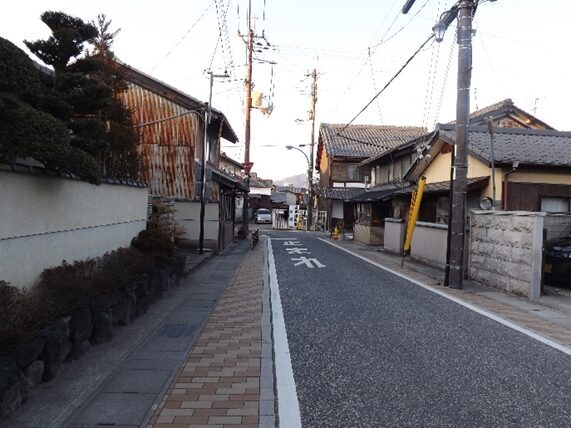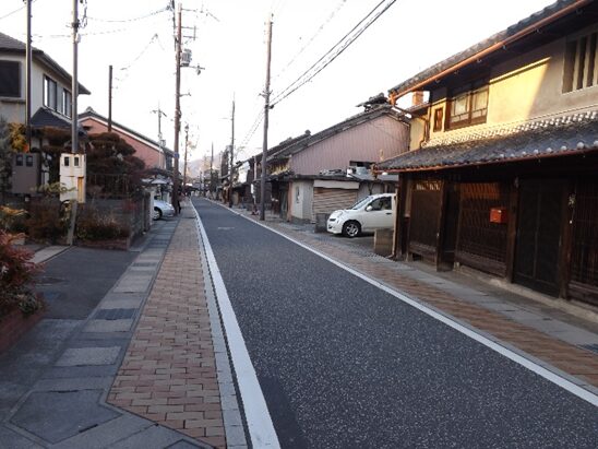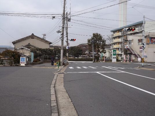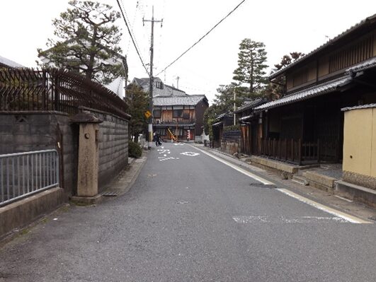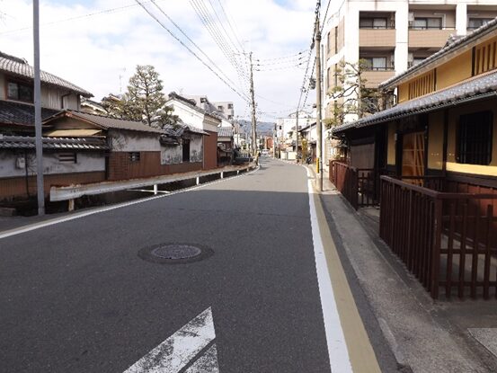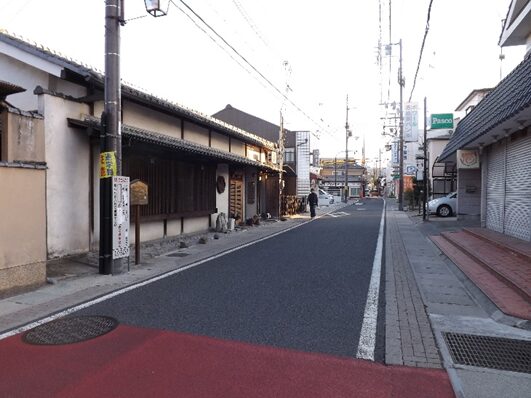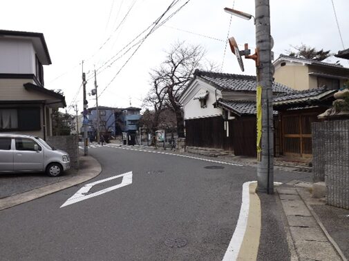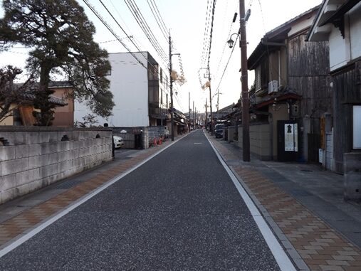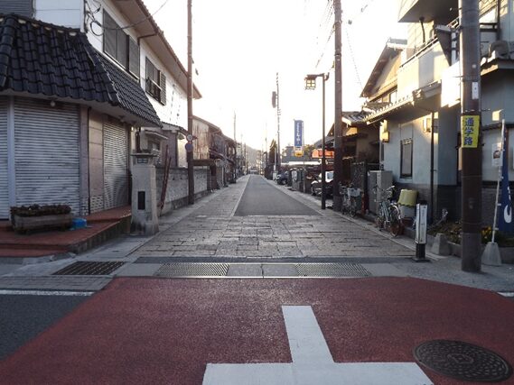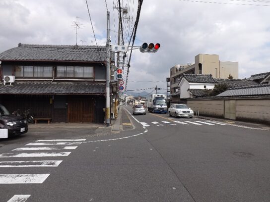 街道を少し進むと十字路に出ます。西堅町と京町の境で右に折れます