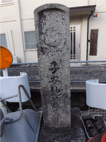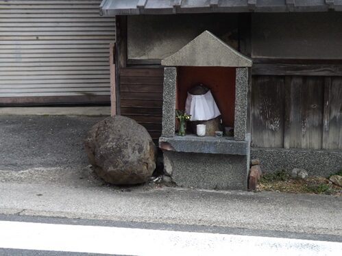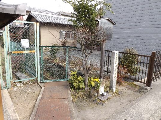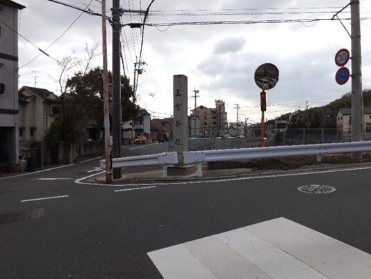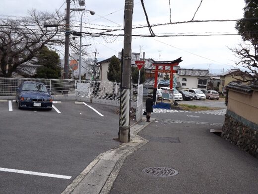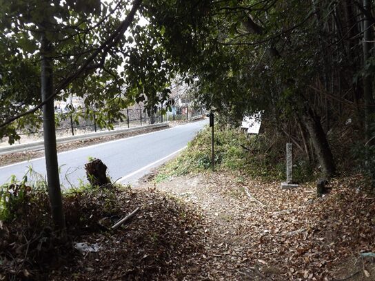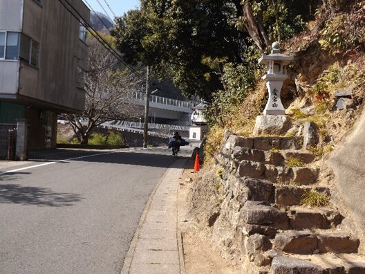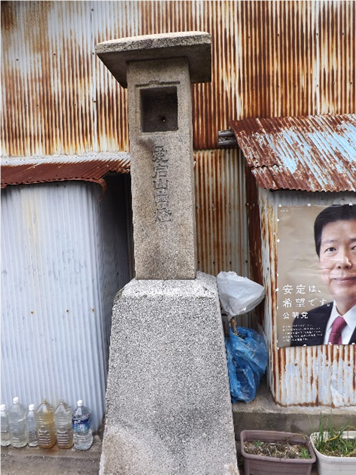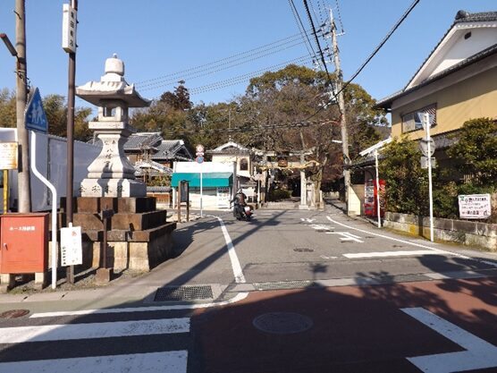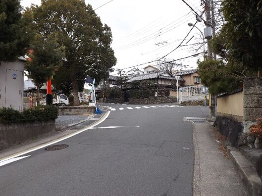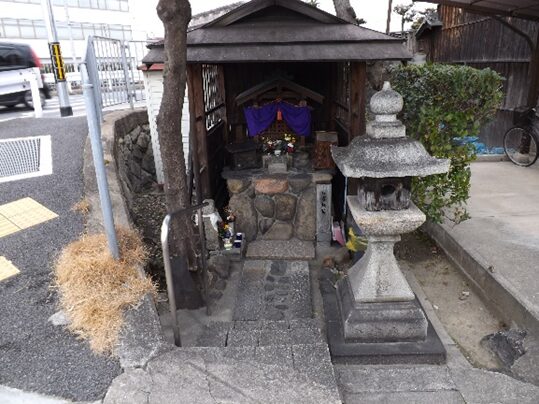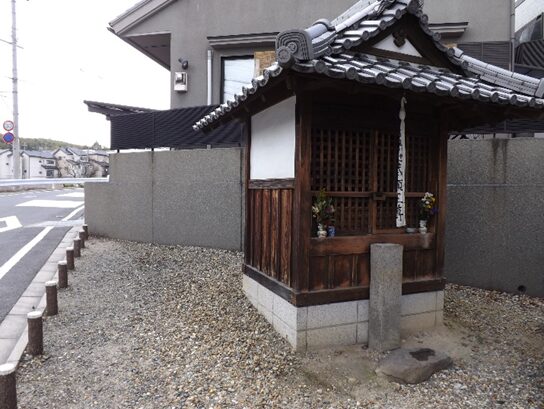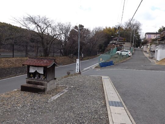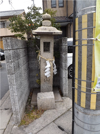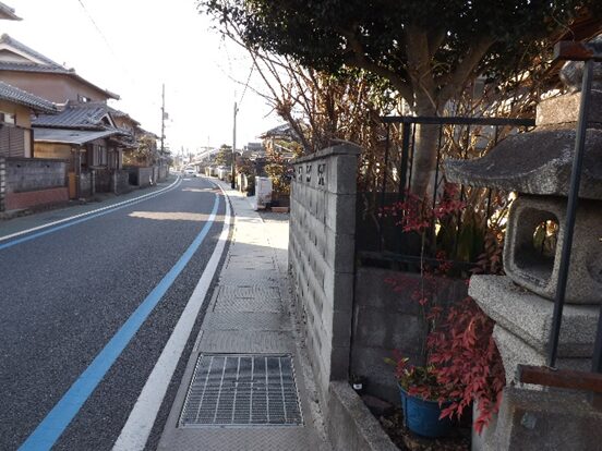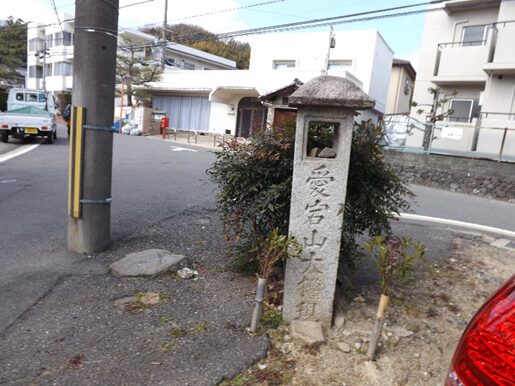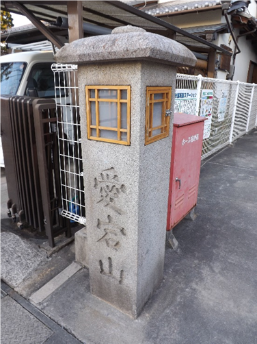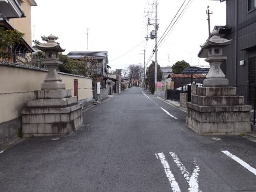 道標から100m程西へ進むと右に、愛宕燈籠が立っている角を左に折れます