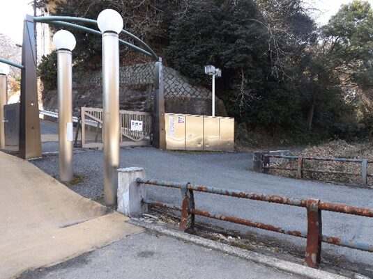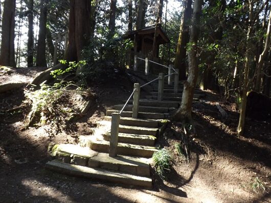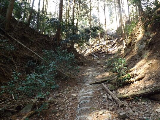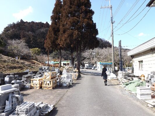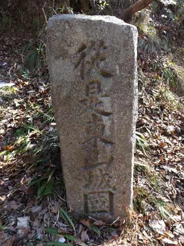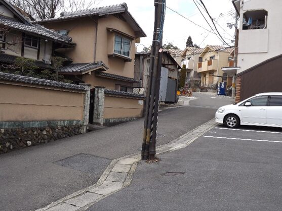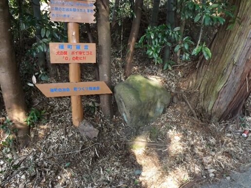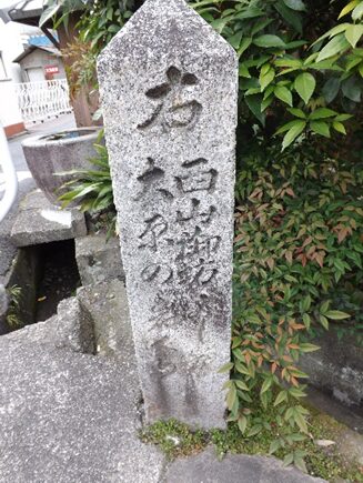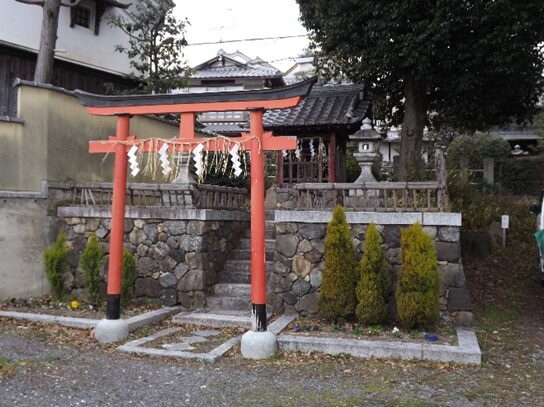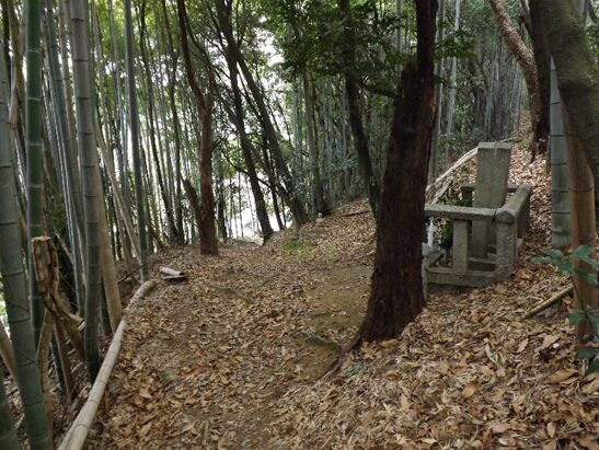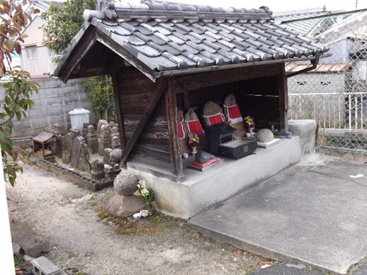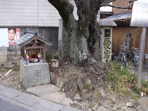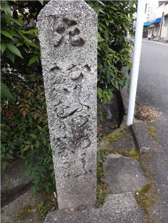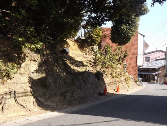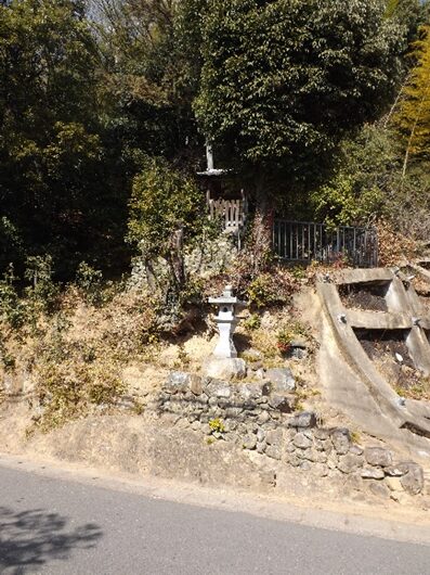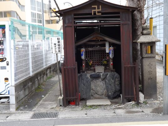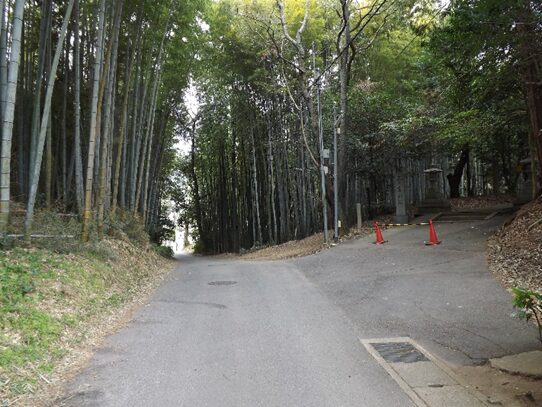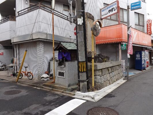 道標から100m程西へ進むと右に、愛宕燈籠が立っている角を左に折れます