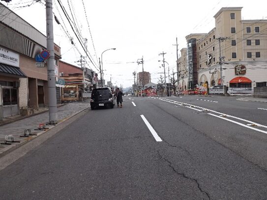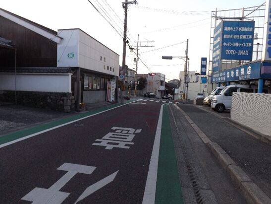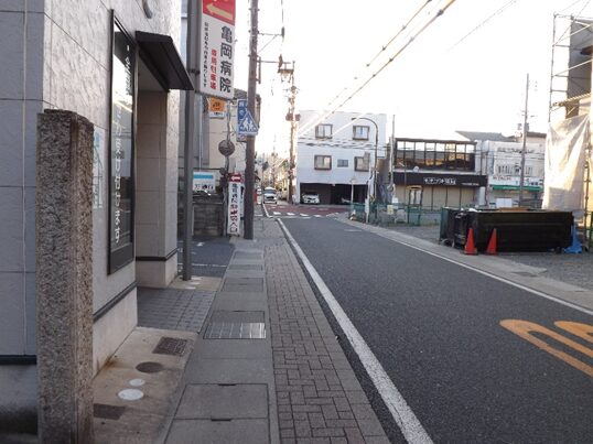 街道右の亀岡病院のある辺りに 本陣 があった、高野振り返ったところ