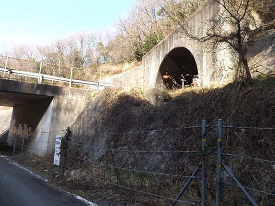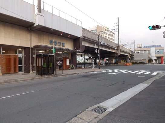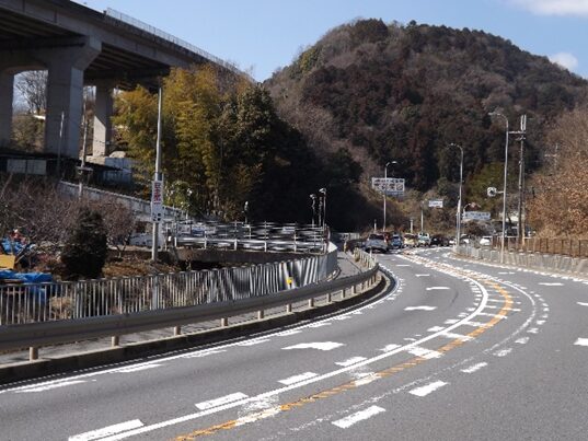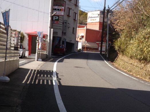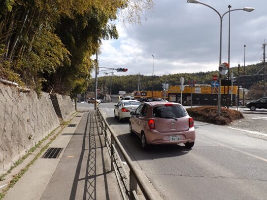 広くなった道の先、信号で分岐しますので左の道に入る。真っ直ぐ200m程進みますとJR馬堀駅です