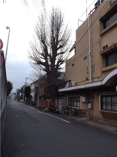 丹波口駅から東に中堂寺通りを島原住吉神社の旧境内地にあった、 大銀杏