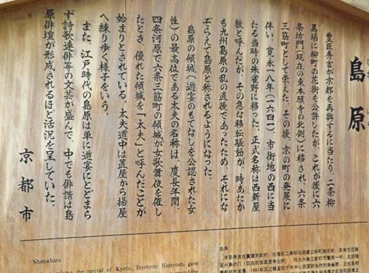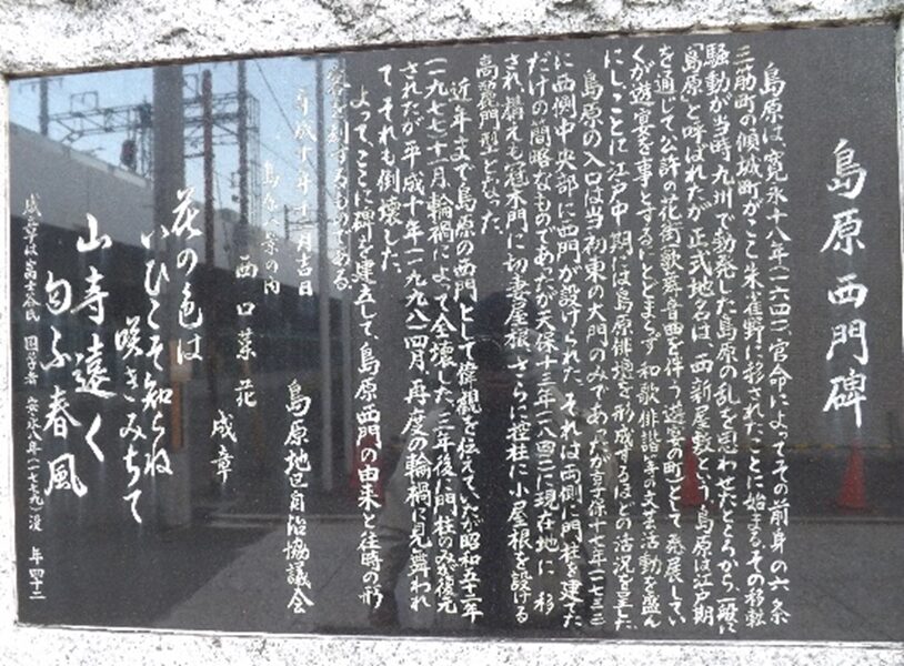 丹波口駅前の中央卸売市場の東南角近くにあり、明治時代に開設された 島原歌舞練場跡 をみて、現在は石碑のみ残る