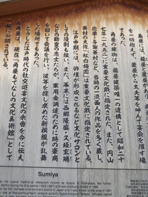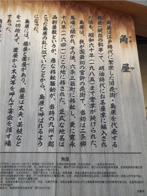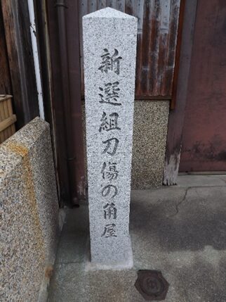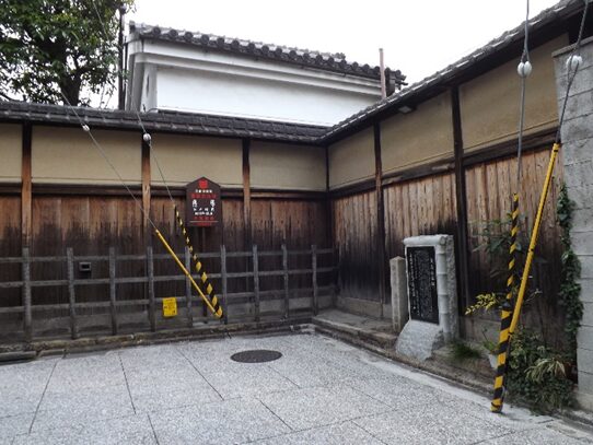 西新屋敷中之町 島原の角屋の角に長州藩士 久坂玄瑞の密議の角屋碑