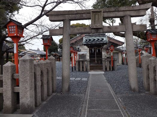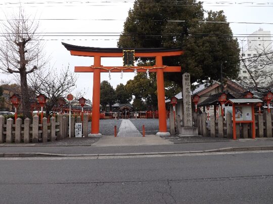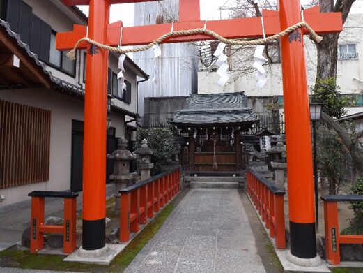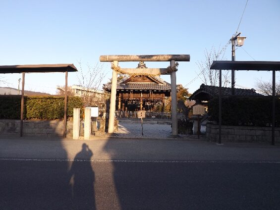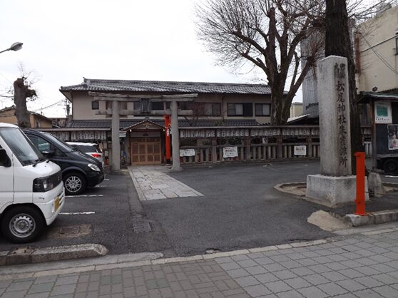 左の大きな建物は、少し進むと左に 松尾大社朱雀旅所