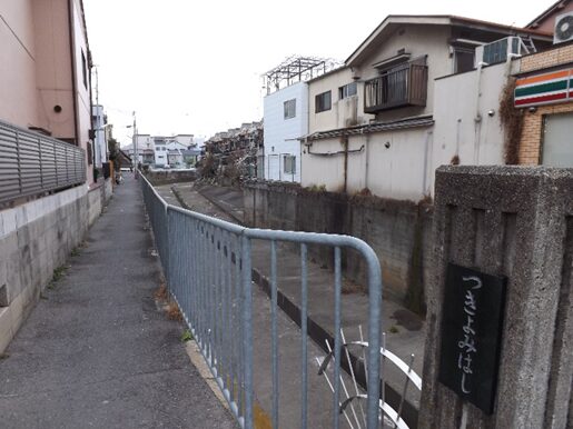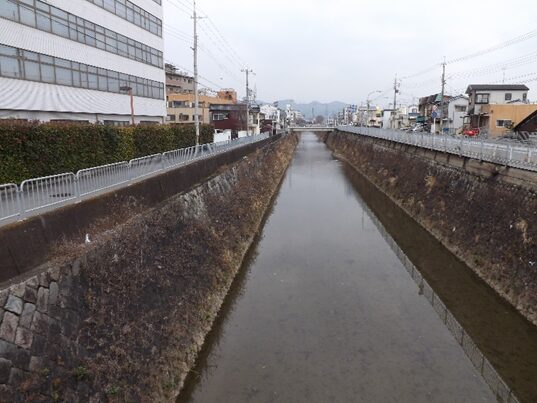 辻から前述の川の合流している所を見る橋の辺りがかつての 船着場跡 おそらく川幅がもっと広かったのだろう