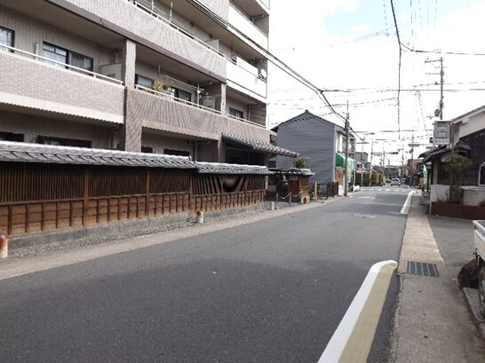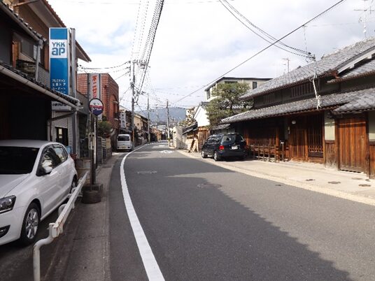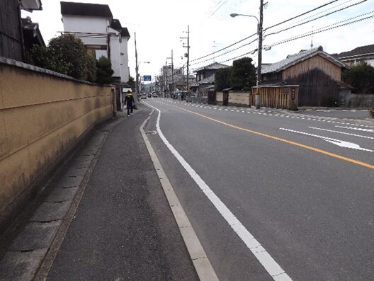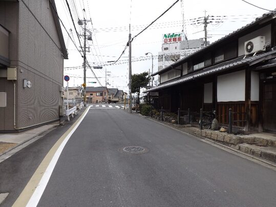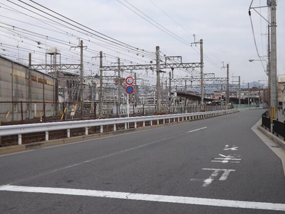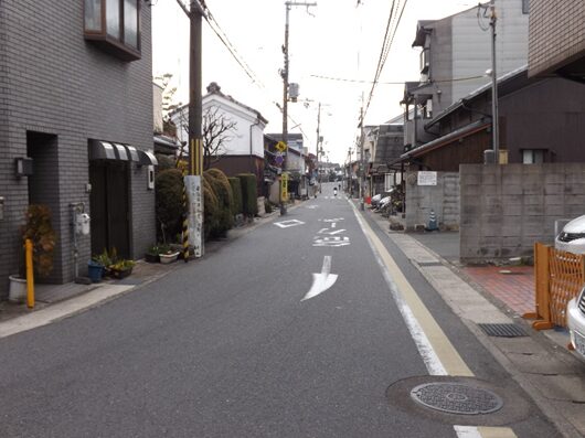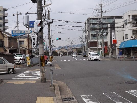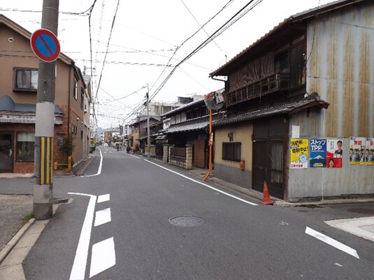 南に進んだ葛野七条信号交差点に戻り西進みます。90m程先での一つ目の信号交差点で分岐しているので左の七条通りに入ります