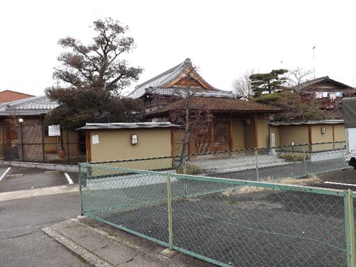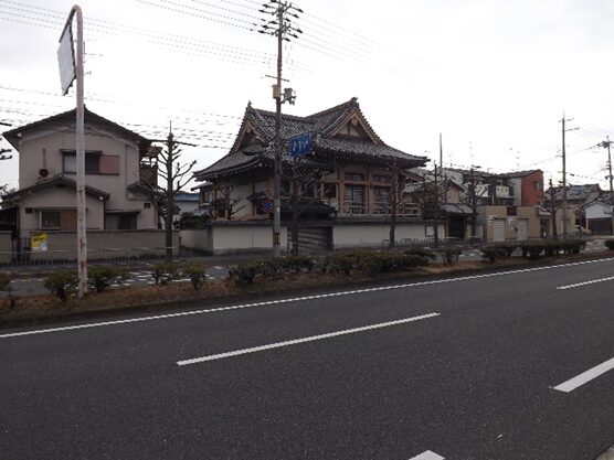 その先で少し左にカーブしています左手に 浄土宗地蔵院安胎寺 の新しい建物があります