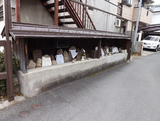 神社の北西の 臨済宗大徳寺派西来寺 の傍に沢山の お地蔵さん