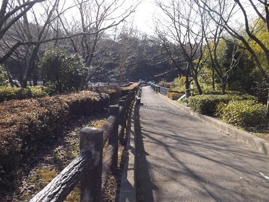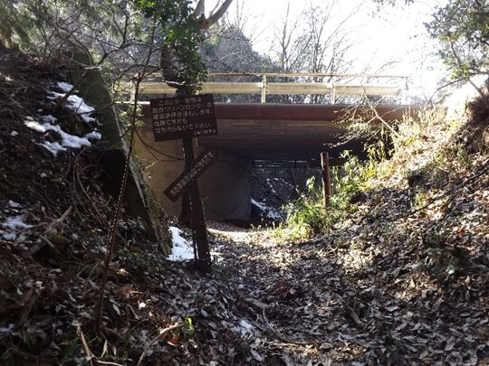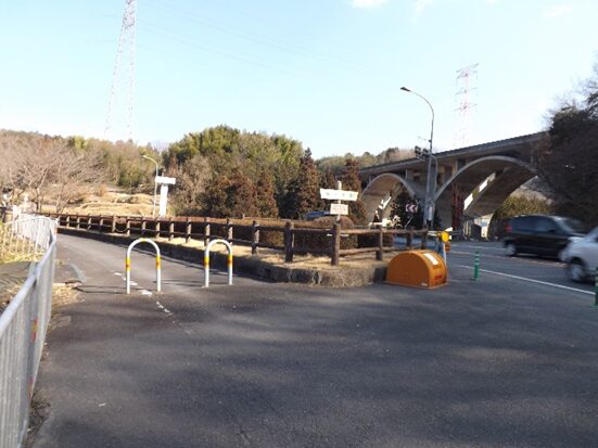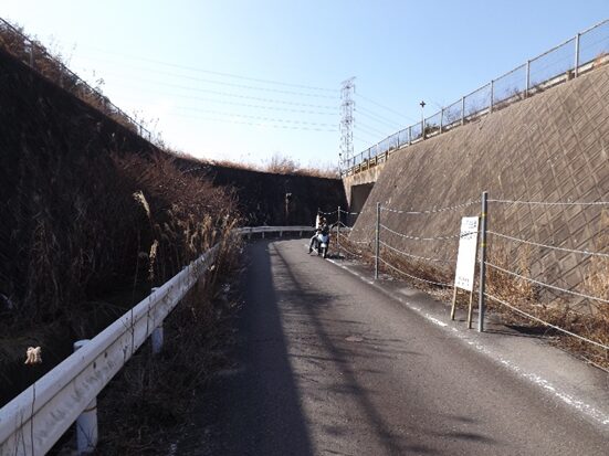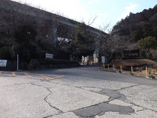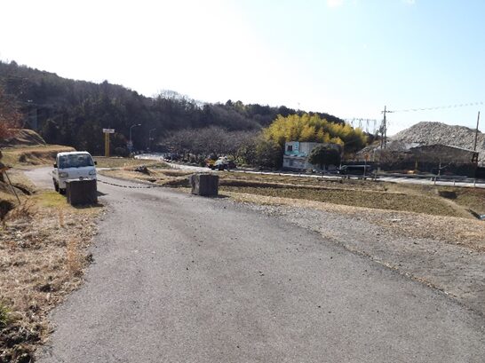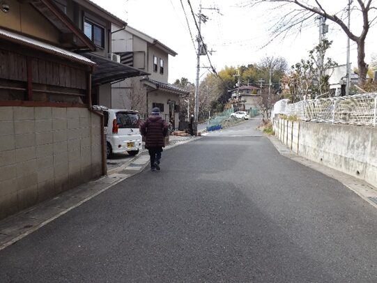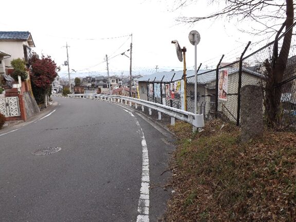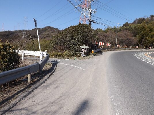 分岐して100m程駅方向(北)に進み、左に折れて西に真っ直ぐ進みます。馬堀駅近くから篠山迄40㎞程です。左に折れる手前右に馬堀公民館があります