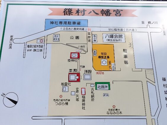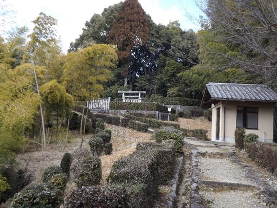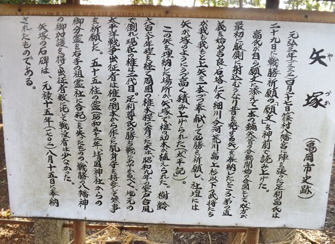 元弘三年(1333)四月二十九日、足利尊氏は篠村八幡宮において、必勝祈願を願い鎌倉幕府に反旗を翻した。その時、戦勝祈願に矢を奉納し埋納した塚が境内裏手に残る