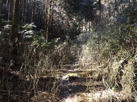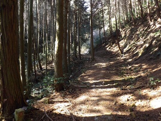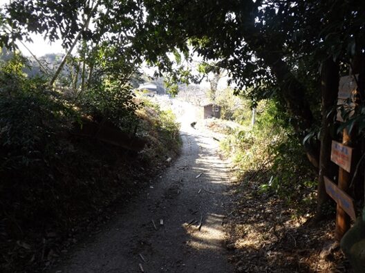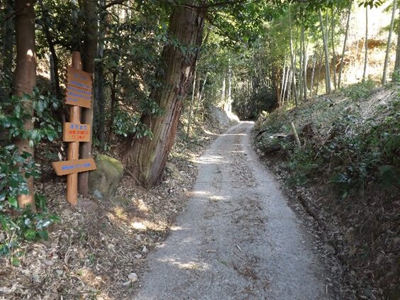 100m程進むと五差路に分岐、左から二つ目のほぼ真っ直ぐの道を進みます