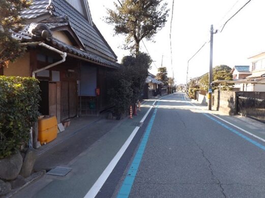 踏切りを渡り街道は真っ直ぐ西ですが、少し線路に沿って左に入ったところに