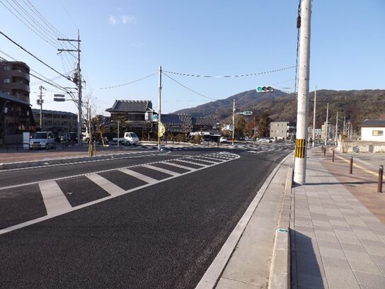 右手奥に安詳小学校が見えるところで信号交差点を越えます