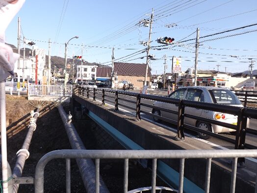 交差点より300m程進むと西高瀬川に架かる月読橋を渡ります