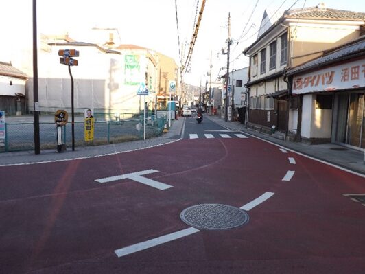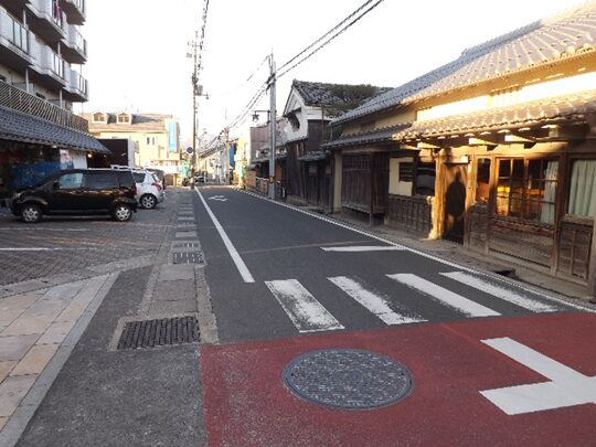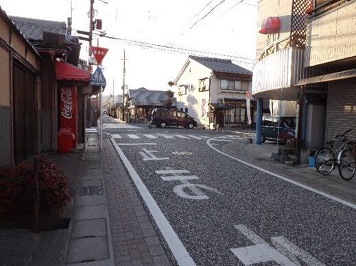 街道に戻ります、西に本町通りをすすむとT字路となります