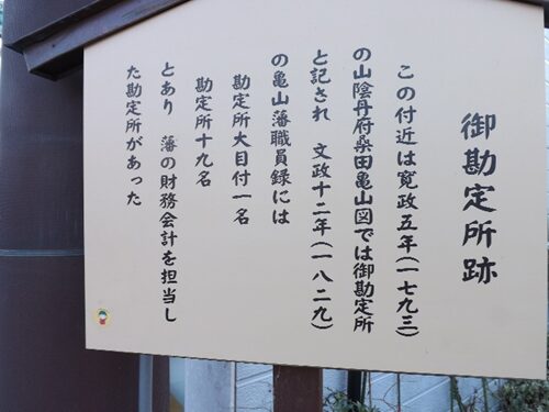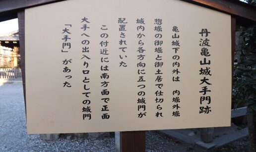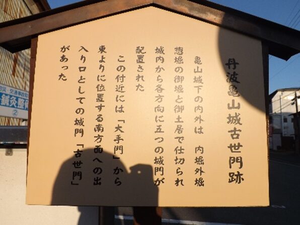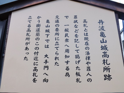 亀山城下は東西に延びている町で、出入口は五か所あった。城下の東から京口・穴太口・清水口丹後口・亀山口(篠山口)の五口であった。今歩いてきたところが京口です