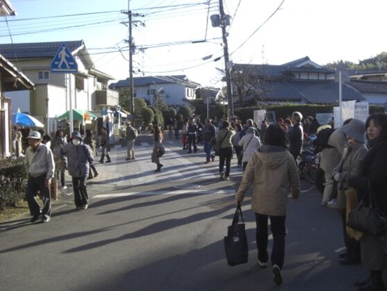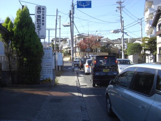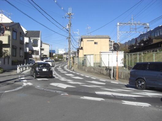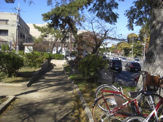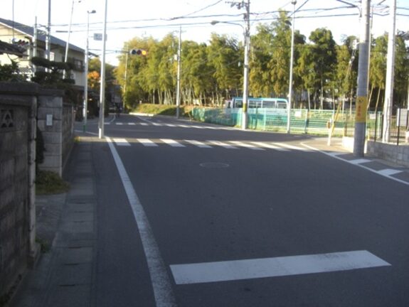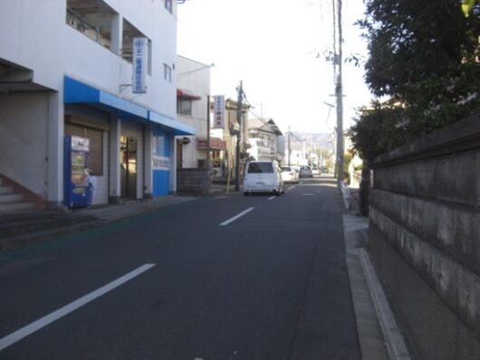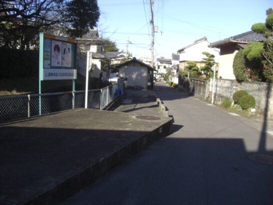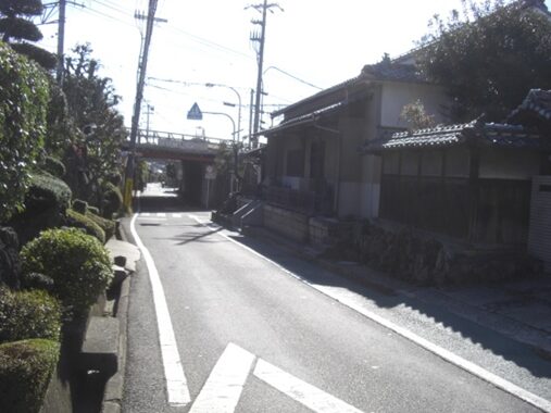 参道入口より東の長岡京市駅不幸を見る街道は左へ