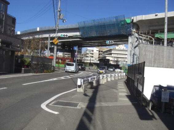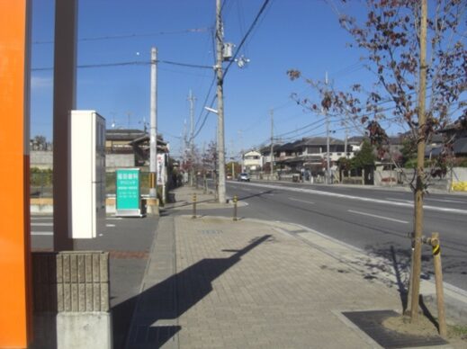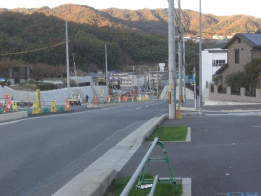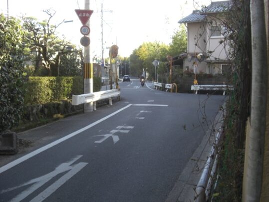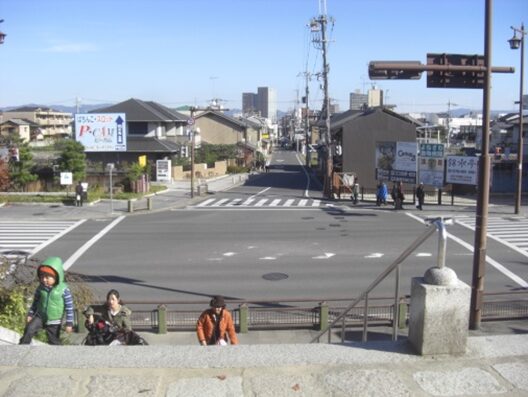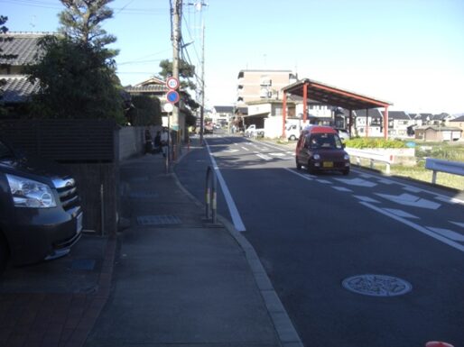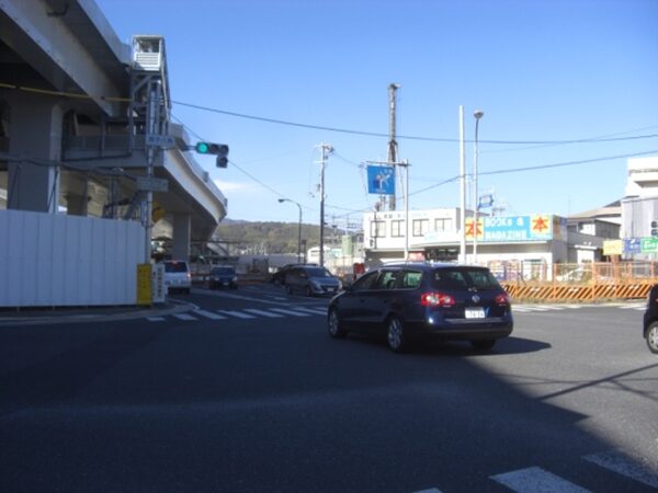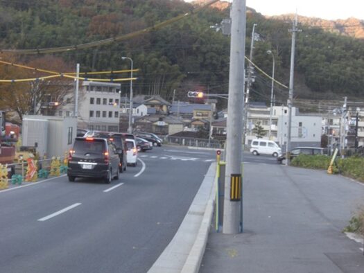 この交差点は私が歩いた時の2012年11月と比べ現在は見間違えるほど様変わりをしている。交差点のほぼ真上を京都縦貫自動車道の高架道路が出来ている。最近の地図を見て驚いた。