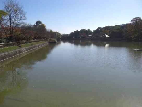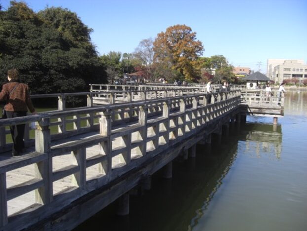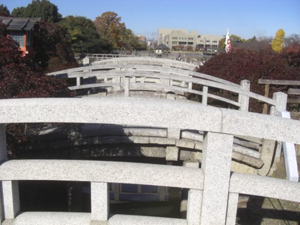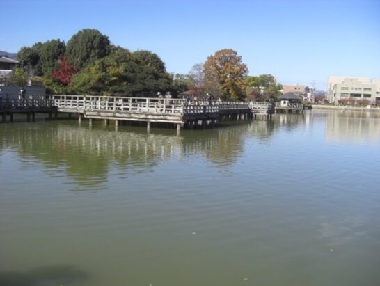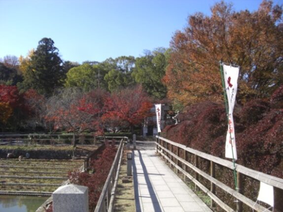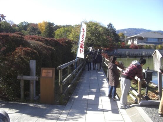 長岡天満宮の参道は、八条ヶ池の水上橋