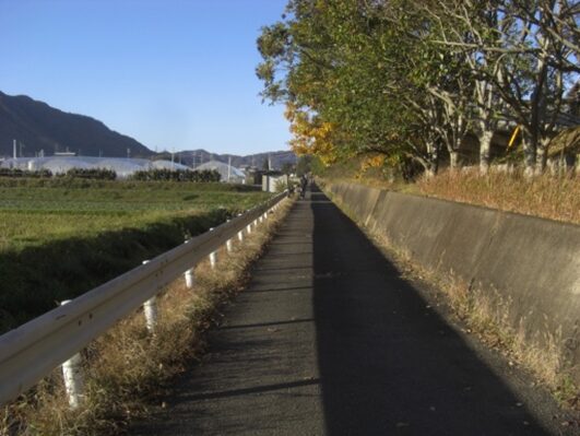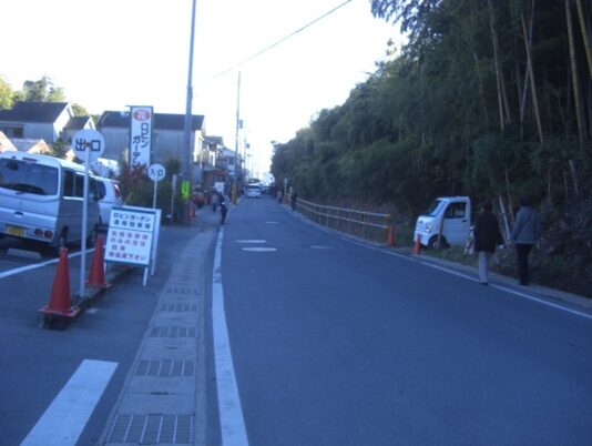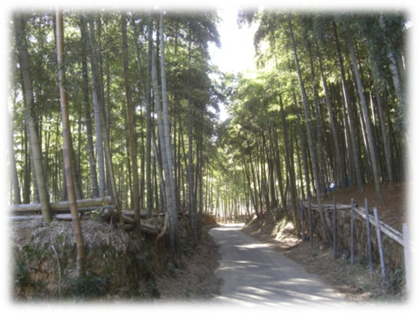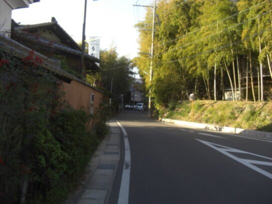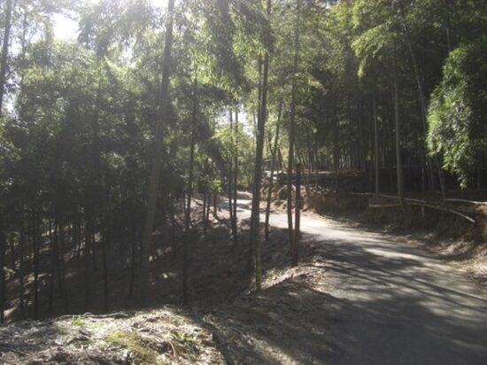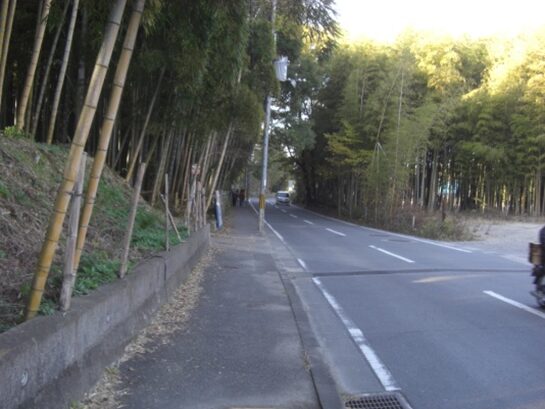 更に両側に竹藪が林立する間の街道を緩やかに上る