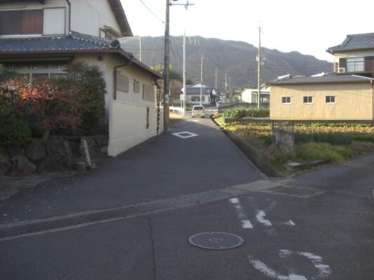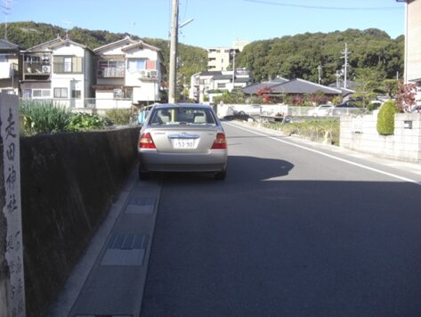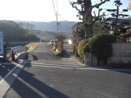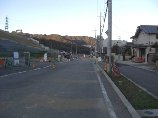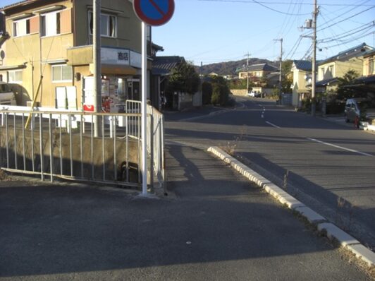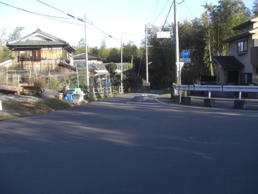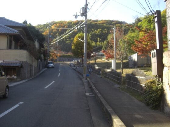 大原野西境谷町1丁目、右前方に洛西高校がある所で斜め左の道に入るここから旧道が復活する