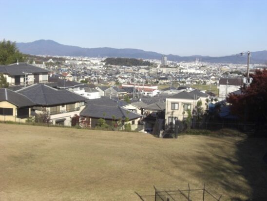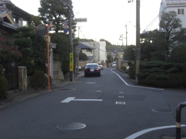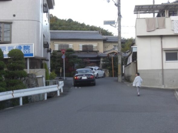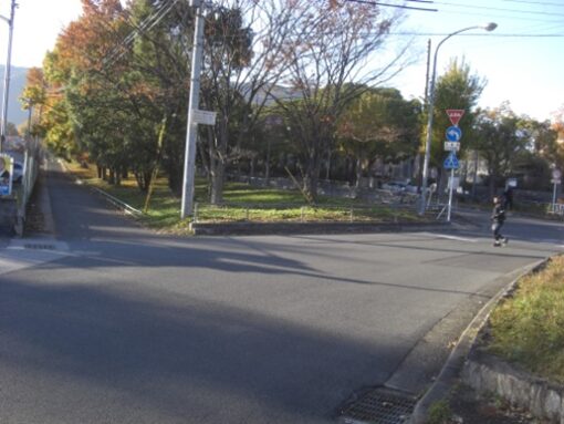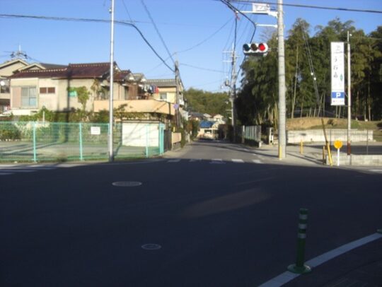 道は暫く進むと洛西ニュータウンに出るので仕方なくニュータウンの南を走る外縁、竹の里本通を左に折れて西へ回り、L字型に回り北へニュータウンの外周を歩きやがて北に進んだところで、右に洛西高校のある所でやや北西に進む