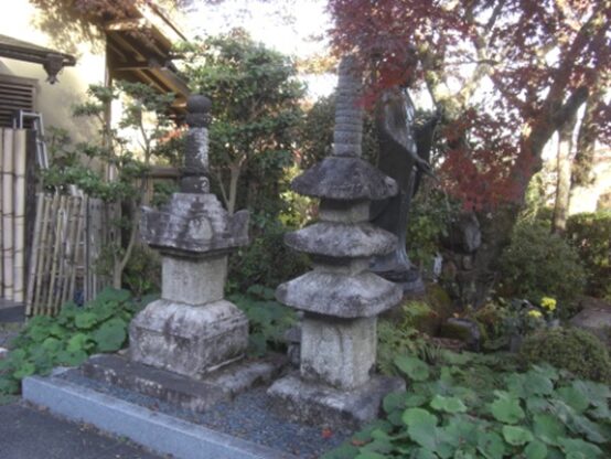 本堂前にある 千観供養塔と鎌倉時代の 三重の石塔