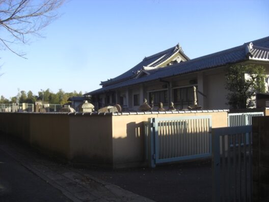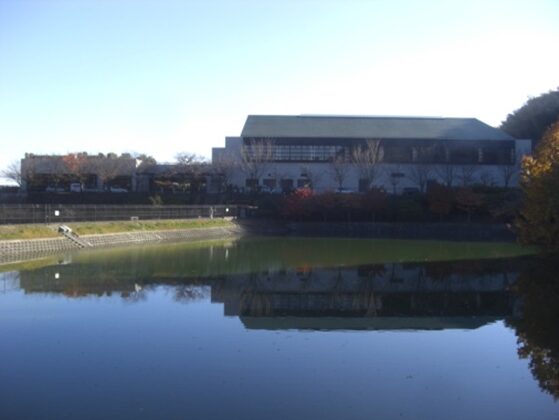 体育館の西側に池があり北側から回り込むと長法寺がある
